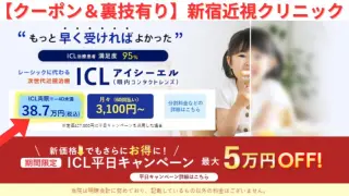 未分類 【クーポンコード有り】『新宿近視クリニック』ICL 最新キャンペーン割引情報 お友達紹介制度 新宿近視クリニックで現在開催中のキャンペーンやお得情報についてまとめました。紹介割引の他にも平日割や医療費控除等細かいところまでお安くなる情報について記載しております。検討している方は是非ご覧ください。レーシックやラゼックについても一部適用します。 2025.08.05 未分類